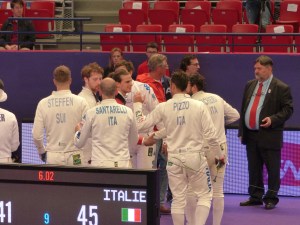 La finale Corée/Italie promettait du suspense. Le mental des asiatiques leur a permis de s’imposer sur les européens impatients et moins précis et notamment sur le dernier relais où Enrico Garozzo fonçait sur son adversaire Jinsun Jung qui l’attendait épée tendue et qui, à cause de la précipitation de l’Italien, a allumé seul à plusieurs reprises.